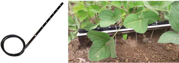 To determine the Kc of the PAR on the canopy of the cultivar sown in the present study and, to obtain LAI measurements for the complete development cycle of the cultivar, measurements of the incident PAR (PARin) and intercepted PAR (PARint) were performed for both crop season, using the PAR Apogee® SQ-316-S bar sensor (Figure 2).